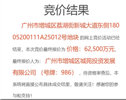 其中,位于增城区的荔湖街新城大道东侧18005200111A25012号地块容积率仅为1.02。广州市增城区城苑投资发展有限公司(增城城投集团下属子公司)以6.25亿元拿下地块,折合楼面价为8552元/平方米。